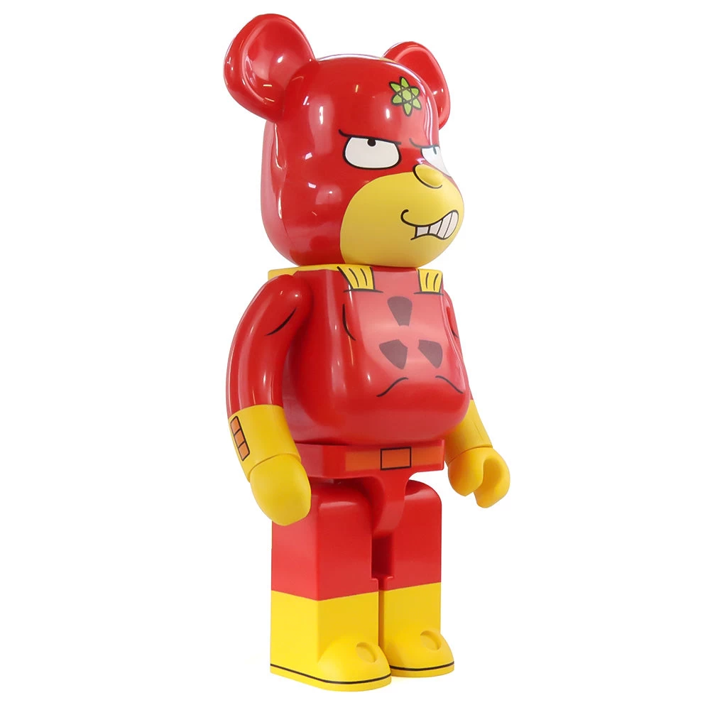 Voici le Bearbrick 1000% de Radioactive Man, le super-héros de la bande dessinée du même nom qui a reçu ses pouvoirs après avoir survécu à l’explosion d’une bombe atomique. Il est toujours accompagné de Fallout Boy et a fait sa première apparition lors du 21ème épisode de la 2nde saison des Simpson, nommé « Un pour tous, tous contre un ».