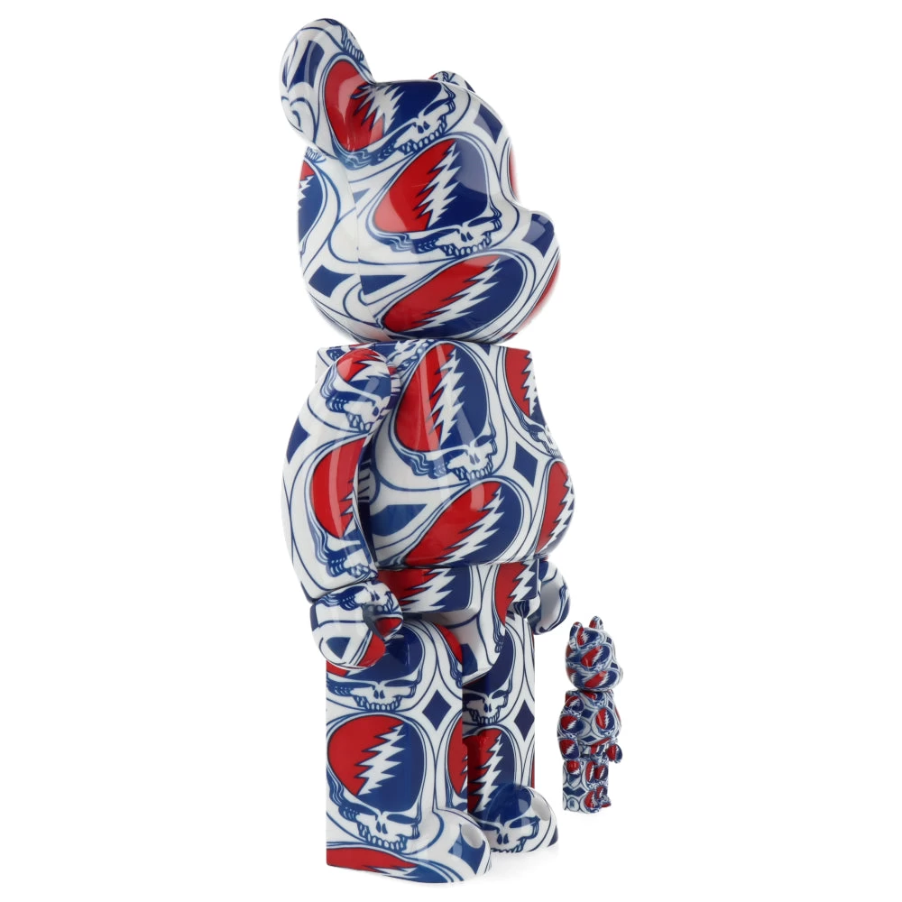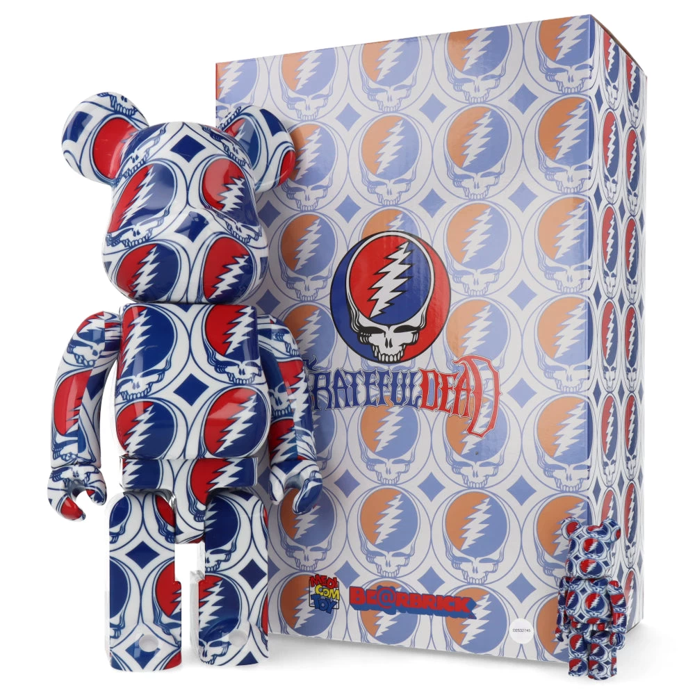 Sur ce set Bearbrick 400% + 100%, le logo qui a été crée en 1969 est disposé à différents endroits et représente parfaitement les Grateful Dead et leurs couleurs. Il aurait vu le jour pour permettre au groupe de repérer facilement le matériel embarqué lors de tournées.