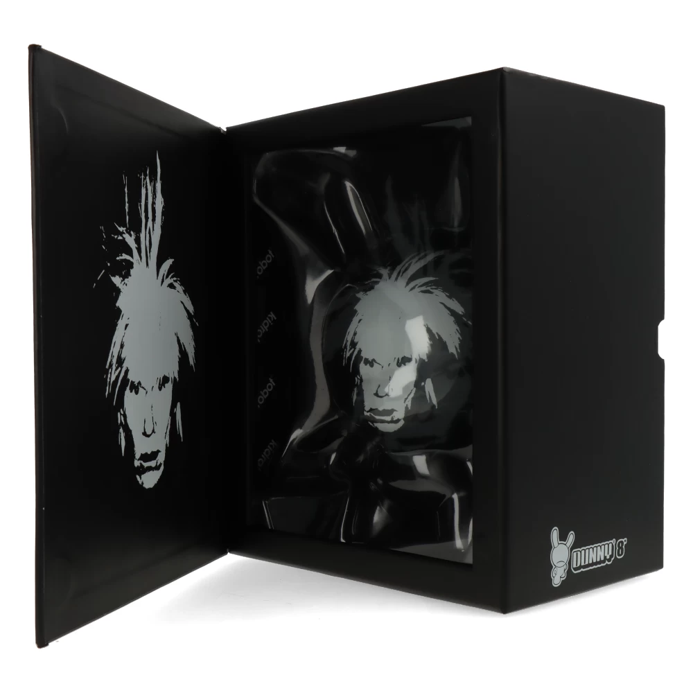 Voici la nouvelle collaboration entre Kidrobot et la Fondation Andy Warhol, qui se présente sous la forme d’un Dunny de 8″ (20,32cm) portant un autoportrait de l’artiste en monochrome.