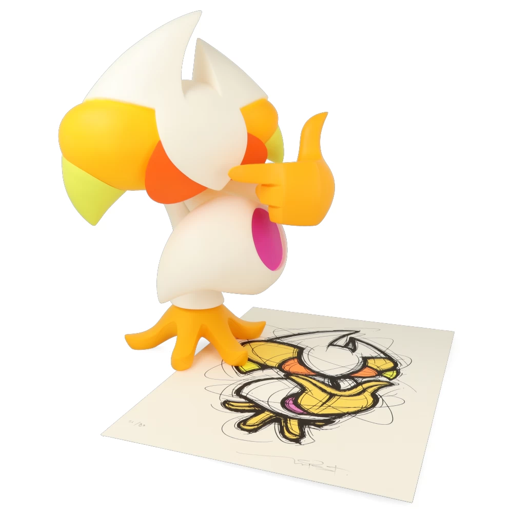 Cerise sur le gâteau, une sérigraphie signée et numérotée de l’artiste accompagne la figurine. Un toy à ne pas manquer pour les amoureux d’art.