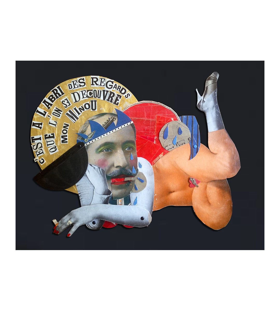Le collage à partir de documents d’époque et la poésie sont les domaines de prédilection de Madame, tout comme la plaisanterie et la provocation mêlées d’un brin d’extravagance. Madame se livre est une monographie qui s’articule autour d’une série de séquences visuelles « narratives ». Embrassant de nombreuses facettes de l’œuvre de l’artiste, elle propose un cheminement plein de ricochets. On retrouve ainsi la même oeuvre à travers plusieurs pages, sous des formes différentes, afin de révéler la magie singulière du travail de Madame.