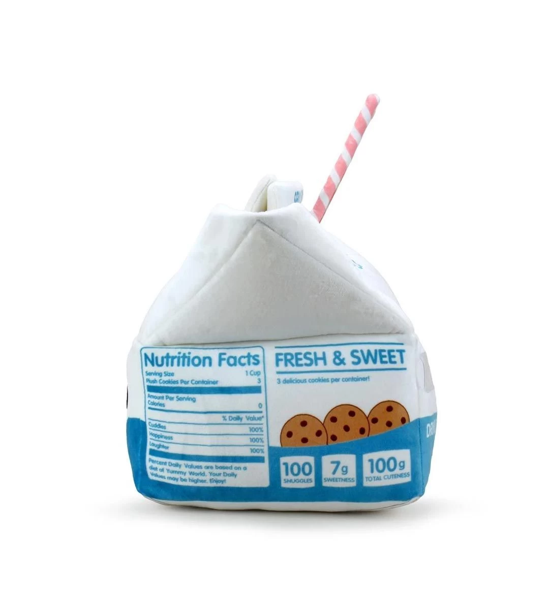 Il semblerait qu’une énorme brique de lait soit de la partie accompagnée par ces petits cookies ! Un goûter réussi à tout point de vue et une joyeuse bande de peluches toutes mignonnes à transporter partout avec vous.