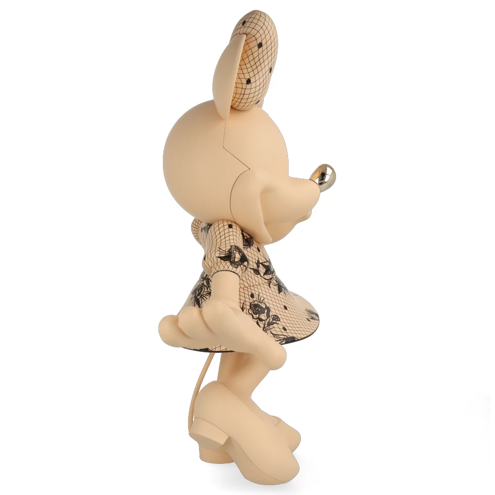 On sait que Minnie est coquette, il n’est donc pas étonnant de la découvrir dans cette nouvelle finition dentelle. L’ensemble de sa tenue ainsi que son petit nœud arborent ce motif, pour un rendu toujours plus chic.