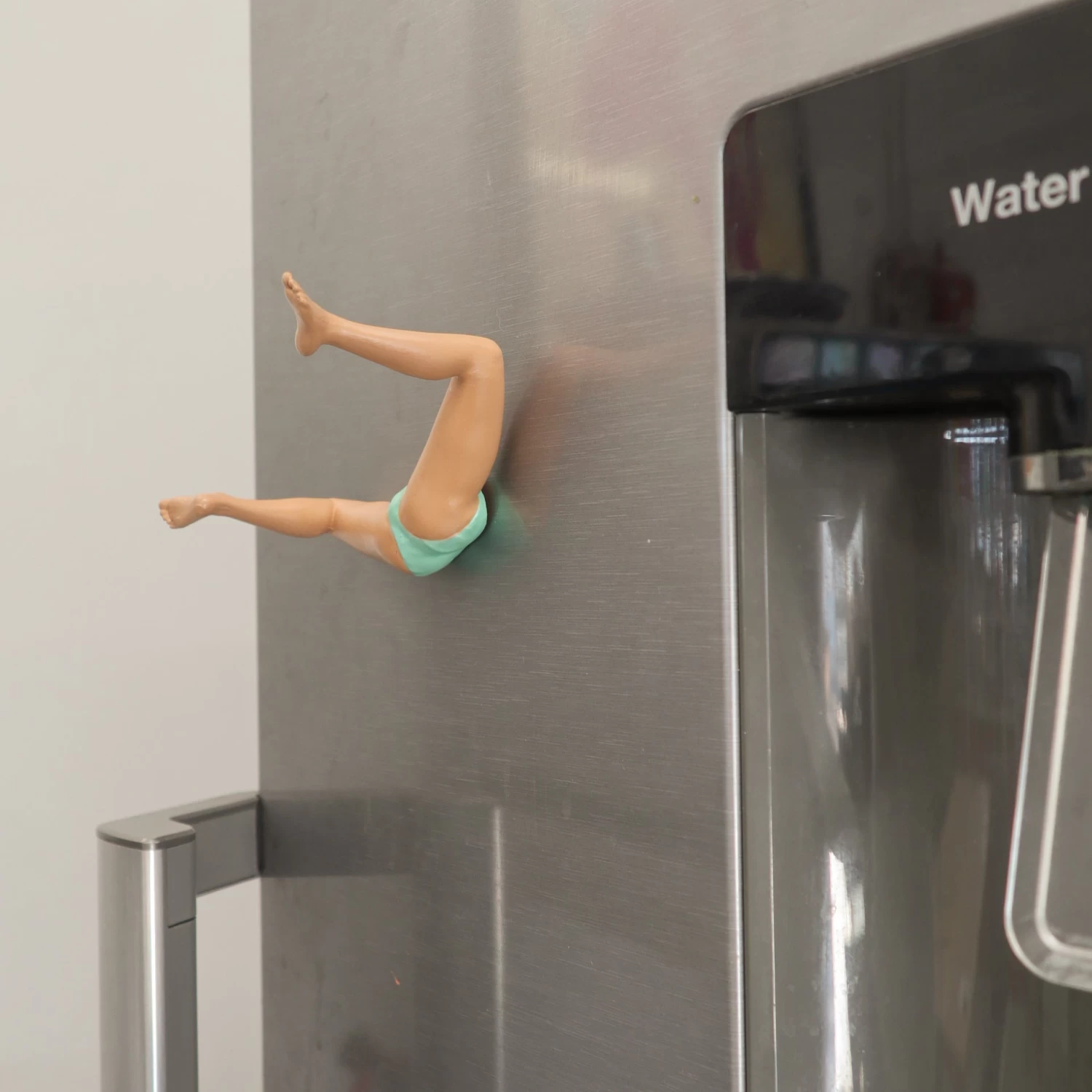 Yulia Nefedova la créatrice des Dirtysockgirls est de retour avec des pièces toujours aussi dérangeantes et provocantes. Yulia s’interroge vous l’aurez compris sur l’objectification de la femme, sur la sexualisation à outrance des corps et elle pousse ici le curseur en réduisant les jambes des femmes et leur bassin à des magnets.