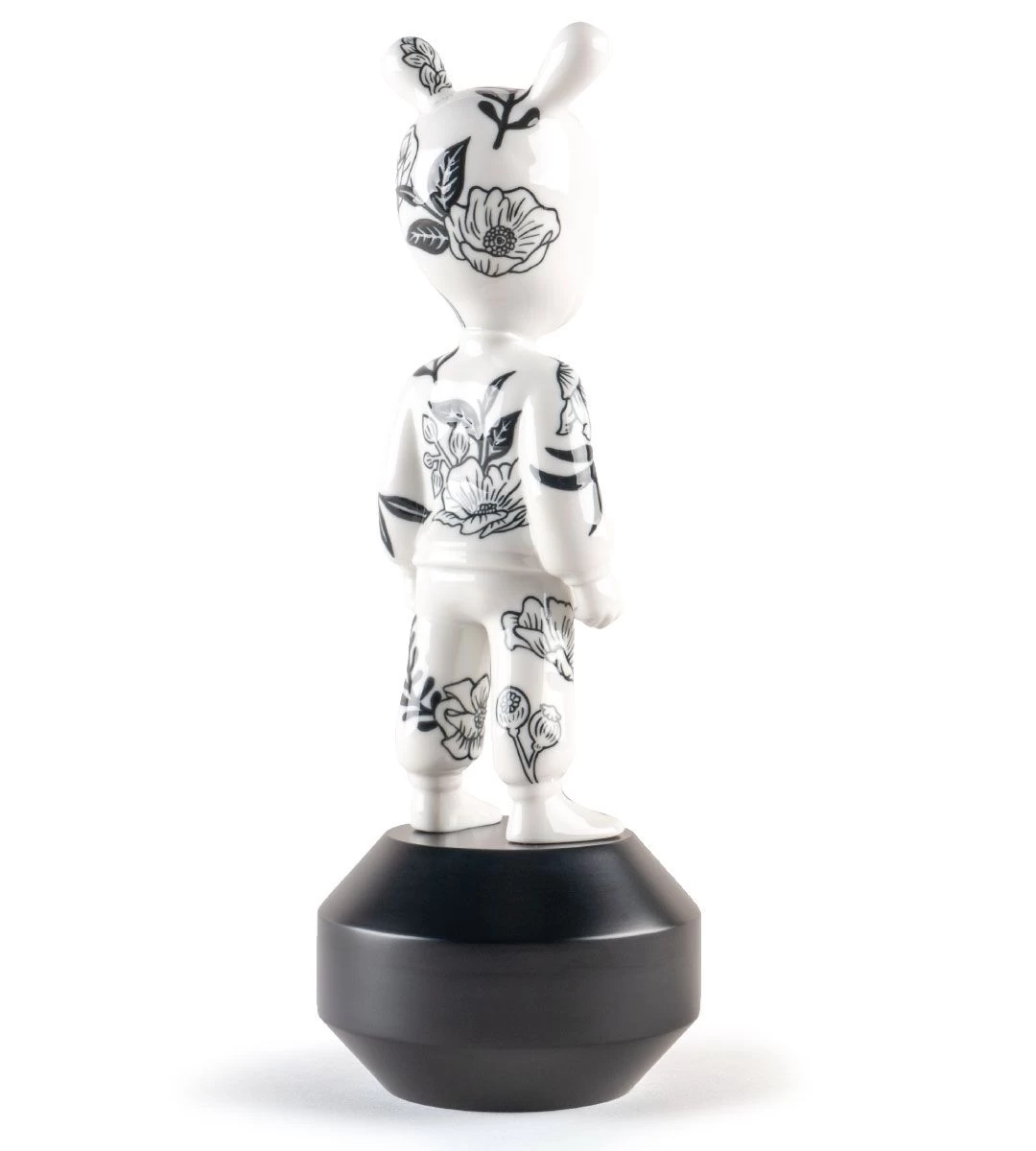 Véritable leitmotiv dans son travail, le pansement est d’ailleurs représenté sur cette version de The Guest en taille Little. Cette figurine reprend également le noir & blanc caractéristique du travail d’Henn Kim.