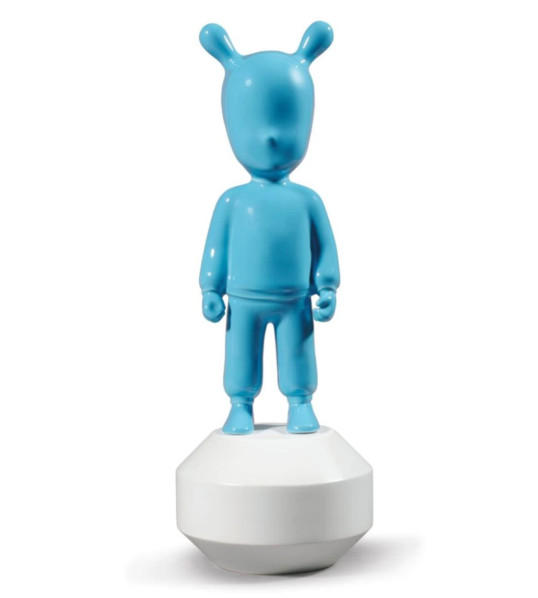 Voici ici The Guest designé par Jaime Hayon dans une déclinaison bleue de 30 cm ! The Guest est un personnage imaginé par Jaime Hayon pour Lladró Atelier, l’idée de The Guest est de proposer d’inviter des artistes à collaborer avec Lladró Atelier en customisant ce personnage enfantin et mystérieux.