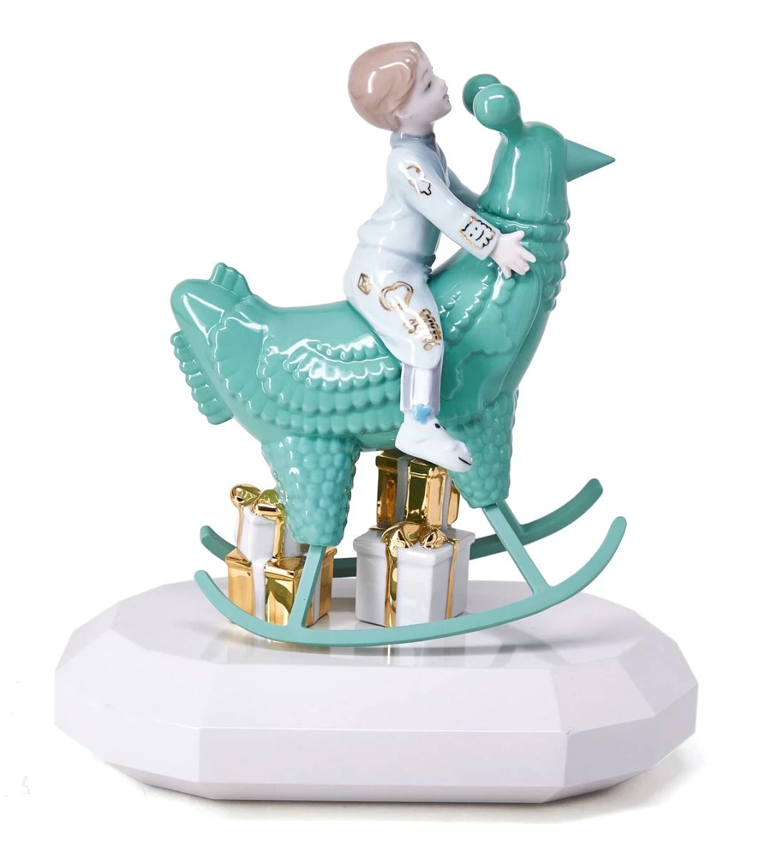 Ici c’est le modèle classique de 22 cm de The Rockin Chicken Ride, dessiné par Jaime Hayon, que nous vous proposons. Une sculpture mélancolique qui rappelle forcément l’enfance.
